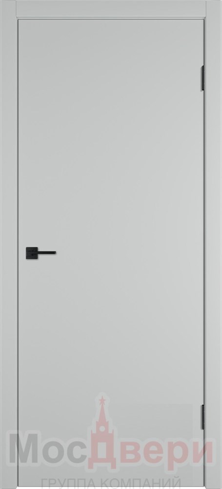 Межкомнатная дверь Profil 1DE Манхэттен глухая в однотонном матовом покрытии Эмалит и черной кромкой ABS. Полотно поставляется с заводской врезкой под магнитный замок Morelli (Италия).