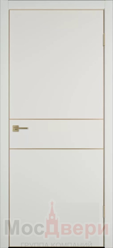 Межкомнатная дверь Profil 27DE/H Крем глухая в однотонном матовом покрытии Эмалит и золотистой алюминиевой кромкой с 2-х сторон. Полотно поставляется с заводской врезкой под скрытые петли AGB Eclipse 2.0 и магнитный замок AGB Mediana Polaris (Италия).