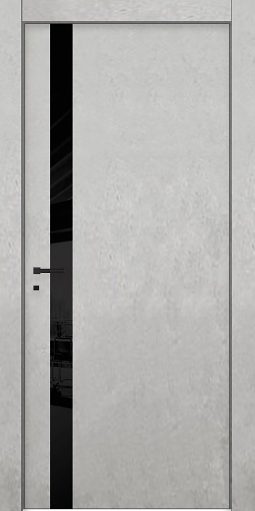 Межкомнатная дверь Profil 6VN Бетон Платина LACOBEL Черный лак в покрытии Экошпон. Черная ABS кромка с 2-х сторон.