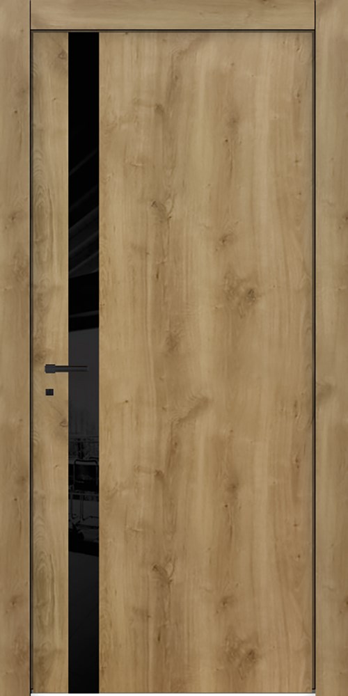 Межкомнатная дверь Profil 6VN Дуб натуральный LACOBEL Черный лак в покрытии Экошпон. Черная ABS кромка с 2-х сторон.