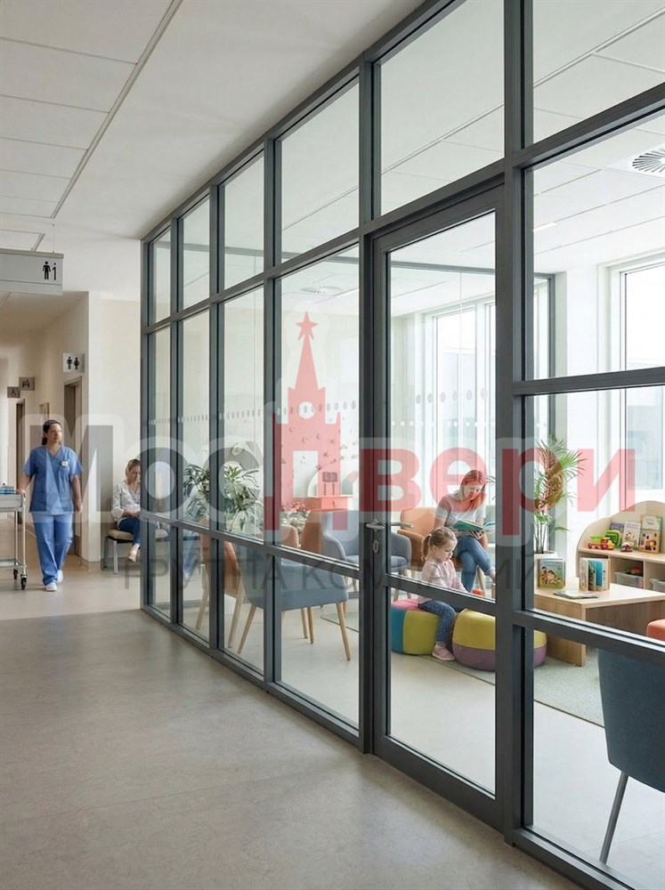 Светопрозрачная перегородка AG Контур UFR-18 из безопасного стекла с бронирующей пленкой для больницы